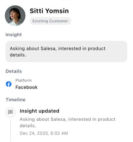 Instantly know who this customer is, what they've talked about or purchased, and what their needs are. With our automatic customer history and data summary system